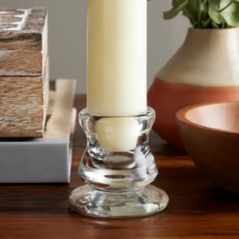 ASHLAND CHUNKY GLASS TAPER CANDLE HOLDERS CLEAR GLASS 6 - 2.2" DIAMETER, 2.36" TALL NWOT