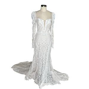 ASHLEIGH CLAIRE Lace Up Back Boho Lace White Cream Wedding Dress Glam Preppy