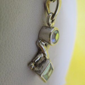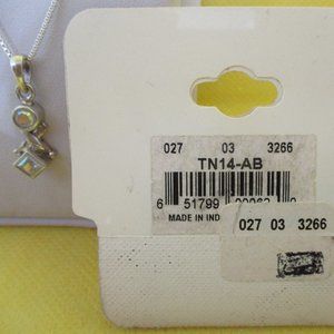 Un Worn Vintage ASHLEY ANDREWS .925 sterling silver Aura Borealis AB Swarovski crystal rhinestone geometric pendant necklace with sterling silver box chain necklace with the original card. Great for a wedding.