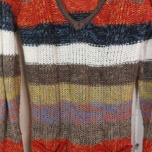 ASHLEY LADIES LONG SLEEVE MULTI COLOR SCOOP NECK SWEATER size L