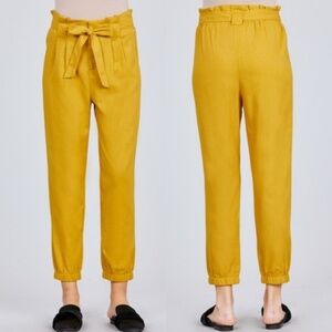 PAPERBAG w/BOW TIE ELASTIC HEM LONG LINEN PANTS