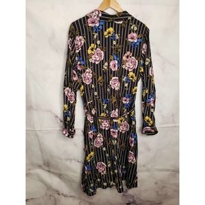 ASHLEY STEWART Black stripe floral button down long sleeve dress