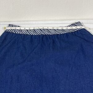 ASHLEY STEWART Size 16 blue high low cut skirt. Material is cotton. Contrasting striped waistband. Please see pics for measurements.