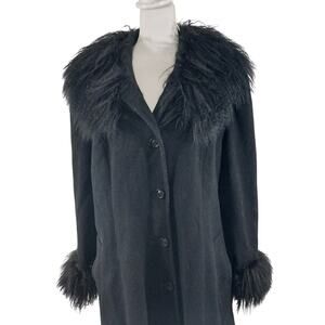 ASHLEY STEWART! STUNNING BLACK FULL LENGTH ALPACA TRIMMED DRESS COAT! SZ 1X