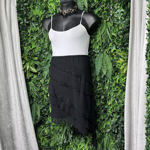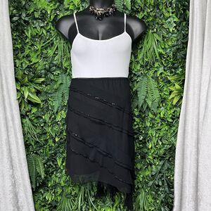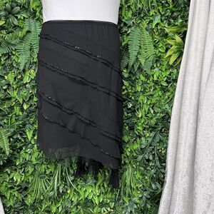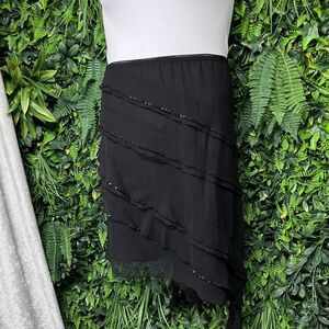 ASHLEY STEWART Skirt Women 2X Black A Line Ruffle Layered Sequin Flowy 1892