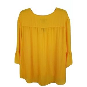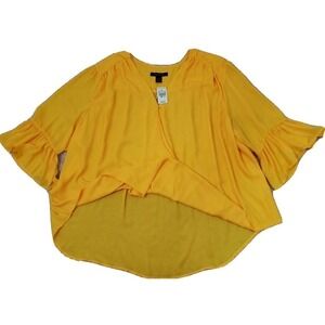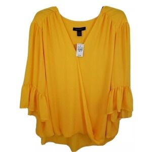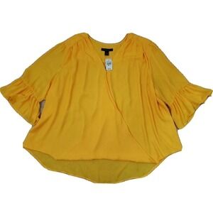 ASHLEY STEWART ~Woman Plus Size 34/36~ Yellow Wrap Shirt Blouse Bell Sleeve NWT.