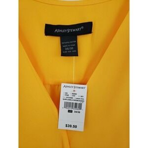 ASHLEY STEWART ~Woman Plus Size 34/36~Yellow Wrap Shirt Blouse Short Sleeve NWT.