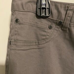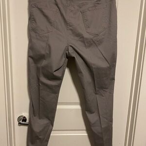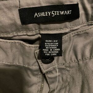 Size 22 olive color pants, five pockets three in the front two in the back 97, cotton 3% spandex 21 waist 25 length