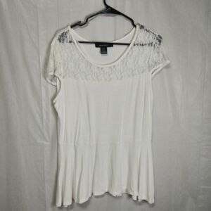 ASHLEY Stewart Lace Yoke Peplum Top White Short Sleeve Plus Size 14 16