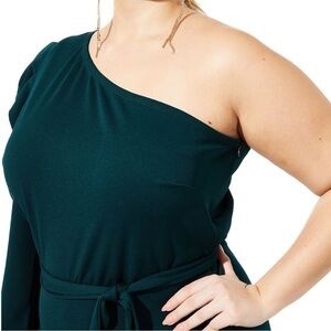 ASHLEY Stewart Size 26-32W Green Puff Sleeve One Shoulder Jumpsuit (T19.10)