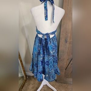 ASHLEY TAYLOR Silk Halter Paisley Print Sundress In Blue/white. O/S NWT
