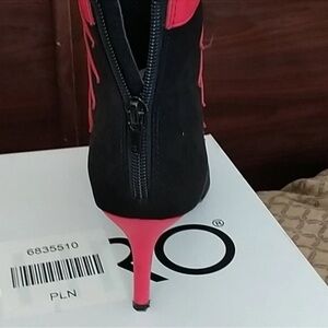 New Elevate your style with these stunning ASHRO Greccia Boots. These boots are perfect for any occasion, whether it's a wedding, party, or business event. The closed toe design and mid-height heel provide both comfort and sophistication, while the zippered back closure add a touch of elegance. These boots come in a beautiful red and black color and are made of high-quality synthetic material. With a solid black/red zig zag pattern and heeled style, these boots are sure to become a staple in your wardrobe. Available in US shoe size 10, these ASHRO Greccia Bootie Boots are a must-have for any stylish woman.