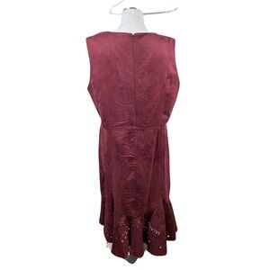 ASHRO Maroon Lined Velvet Midi Formal Casual Wear Dress Size 18W Eyelet Design