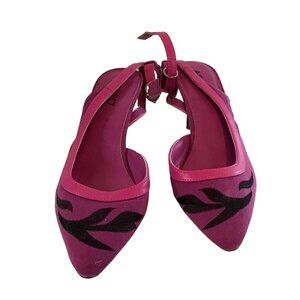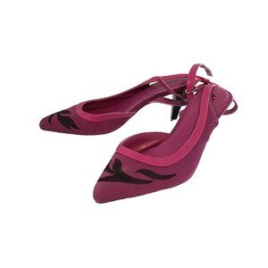 ASHRO Women's Size 9 Purple/Black Pointed Toe Strappy Ankle Buckle Closure with 2" Heel. Shows some signs of wear.