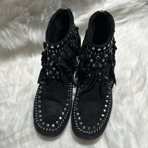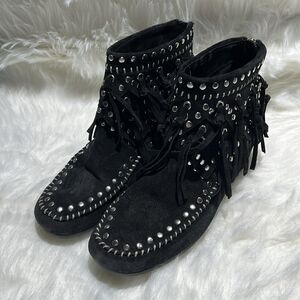 ASH Spirit Studded Suede Fringe Ankle Boots Size 39/8-8.5. B66