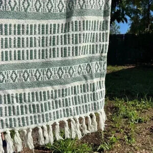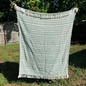 ASHTON WOODS GREEN MULTI THROW BLANKET 100% COTTON 50” x 60” INDIA boho style