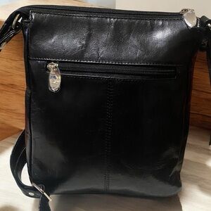 New without Tags. Beautiful black genuine Leather Crossbody with plenty of zippered storage pockets Interior (2) exterior (3) Silver Hardware NEW!! Adjustable strap drop up to 27”