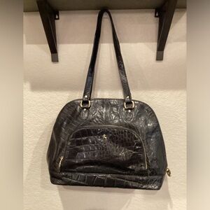 ASHWOOD crocodile print zip around 100% Leather tote handbag purse in black