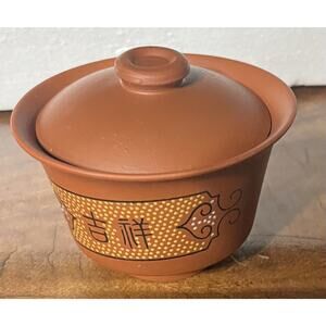 ASIAN SERVING SET Clay Stoneware Rice Warmer Sauce Bowl Lid Saucer 6 Mini Cups &