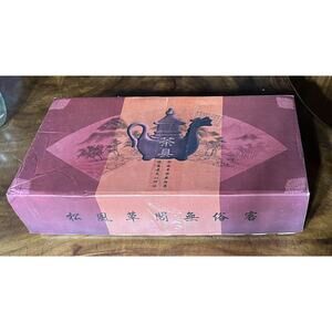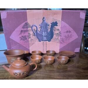This Asian serving set is a must-have for any collector or lover of Chinese culture. Made of clay stoneware, this set includes a rice warmer, sauce bowl, lid, saucer, and six mini cups. The intricate design and attention to detail make this set a true work of art.