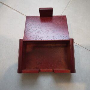 ASIAN WOODEN VINTAGE TRINKET JEWELRY ENAMEL FLOWERS BAMBOO ROSEWOOD BOX