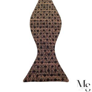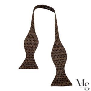 ASIATICA Ltd Brown Geometric Adjustable Self Bow Tie Silk W: 3" EX COND