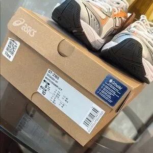 Stylish and comfortable ASICS sneakers in white and orange. Perfect for active play and everyday wear. DOES NOT COME WITH BOX