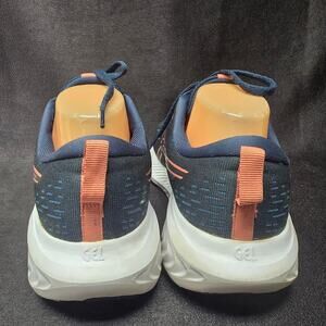 ASICS Blue & Pink Gel Excite 10 Amplifoam Running Shoes Walking Sneakers. Good preowned condition, one of the laces is missing the plastic and is beginning to fray.
