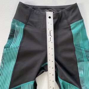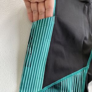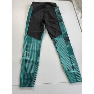 ASICS D1 Leggings Womens XS Athletic Side Pockets Black Green Stripes Activewear