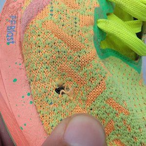 Good looking athletic shoes with a good amount of life on the soles and insoles. There is a small hole on the side of the shoes but still good.