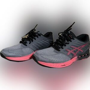 Sleek ASICS sneakers in black, charcoal and pink. Ideal for running and workouts. Brand new, unfortunately reposhing because they are too small.