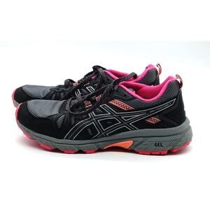 Elevate your activewear game with these ASICS GEL Venture shoes. Designed for running and jogging, these sneakers come in a stylish gray and black color combination with a solid pattern and ASICS logo accents. The shoes feature a lace-up closure, low-top shoe shaft style, and a standard shoe width. Crafted with a blended fabric upper material and man-made materials lining, these shoes boast a cushioned, comfortable, and breathable design. The rubber outsole material provides excellent traction for gym and training activities. These shoes are a perfect fit for women's US shoe size 7 and UK shoe size 5, and EU shoe size 37.5. Add these colorful and athletic shoes to your sports-themed wardrobe and enjoy the comfort and style they bring.
