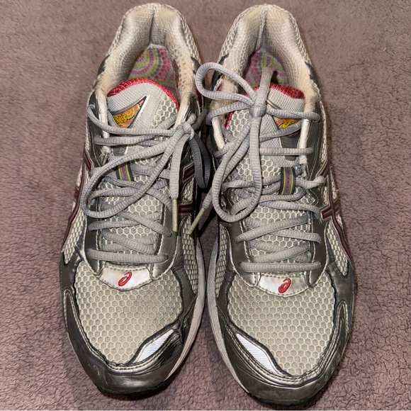 Good condition ASICS GT 2150 T054N Silver Pink. Worn, but lots of tread left.