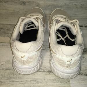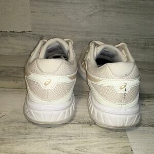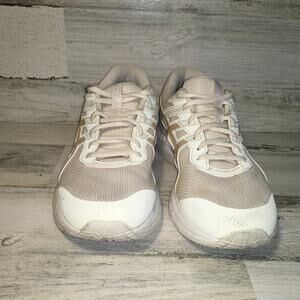 This is a pair of ASICS Gel Contend 6 sneakers in color Birch Champagne (Cream). Womens size 10.5. Condition as seen in pictures.