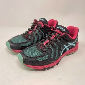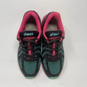 ASICS Gel Fuji Attack 5 Women's 7 1/2 Black Pink Green Sneakers 572:J.3.1