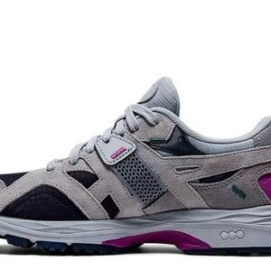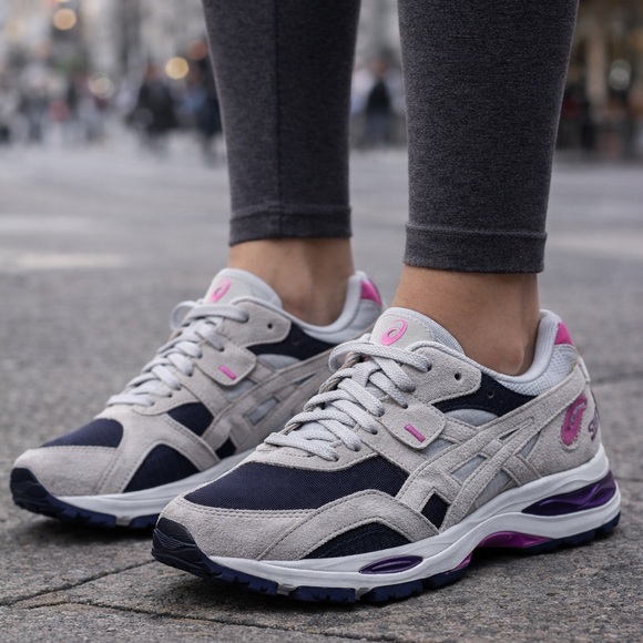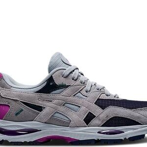 The ASICS women’s Gel MC Plus 'Sheet Rock Digital Grape' brings back a ‘90s running shoe created by Shigeyuki Mitsui, the legendary ASICS designer also credited with developing the Gel Lyte 3. The upper is constructed from black textile with grey suede overlays and a contrasting pop of violet on the back heel. The same grey and purple color combination is applied to the sculpted foam midsole, featuring visible Gel technology in the forefoot and heel for improved impact protection.