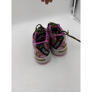 The ASICS Gel Noosa Tri 10 Running Shoes in women's size 7 are a vibrant combination of hot pink, black, and gold colors. These athletic sneakers by ASICS are designed for various activities such as running, jogging, walking, and casual wear. With a tie closure and standard shoe width, these shoes offer comfort and style for all seasons. The colorful and sporty theme makes them a versatile choice for women looking for a blend of functionality and fashion in their footwear.