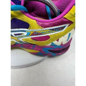 Keywords: ASICS, Gel Noosa Tri 7, women's sneaker, running shoe, triathlon, breathable mesh, lightweight, GEL cushioning, multicolor, athletic shoe, synthetic leather, lace-up, pre-owned, low top, rubber outsole.
