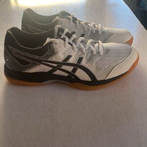 ASICS Gel Rocket Women’s Black/White Indoor Court Shoes Size 9.5 NWOT. Never worn, showing a little pen mark on the left toe. Please see last photo. Price offered reflects this issue.
