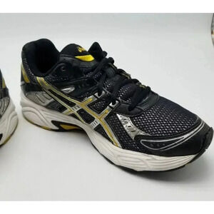 ASICS Gel Strike Silver Black Gold Running Shoes Womens Size 7.5 Clean Condition