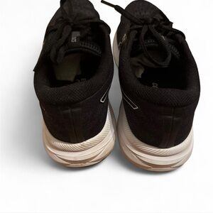 Sleek black design. Ideal for running and workouts. Durable and comfortable. Women’s Size 7, good condition some wear .