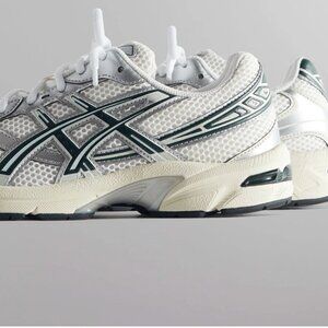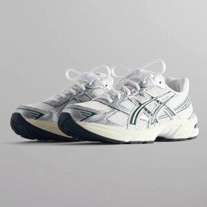 The Kith for ASICS GEL-1130™ is crafted with a synthetic leather and mesh upper, with a padded collar, mesh lining, and the classic ASICS formstripe on the side panels. It features gel branding on the rear, a SpEVA and AHARPLUS, visible gel midsole, and rubber outsole, and is complete with ASICS logo branding on the tongue.