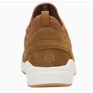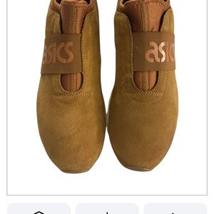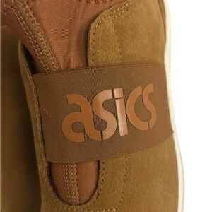 The Asics Gel-Lyte Komachi Strap MT Caremel 1192A021-200 is a women's shoe in size 8 with a peep toe design and slip-on closure. It features a suede upper material in a caramel color, with a rubber outsole for durability. This shoe is part of the ASICS GEL-Lyte product line and is designed for casual wear, sports activities, and travel. The inclusion of straps adds a stylish detail to the overall design of the shoe, making it a versatile and comfortable option for various occasions.