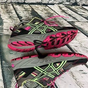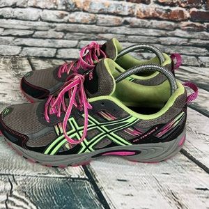 ASICS Gel-Venture 5 Athletic Running Shoes - Gray/Pink/Lime - T5N8N - 9 1/2
