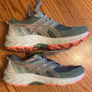 ASICS Gel-Venture 9 Trail running Women Athletic Shoes Green,salmon & gray sz 7