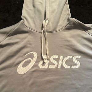 Stylish ASICS hoodie in light gray. Features a kangaroo pocket and adjustable hood. Light gray, men’s size XXL like new never worn make an offer
