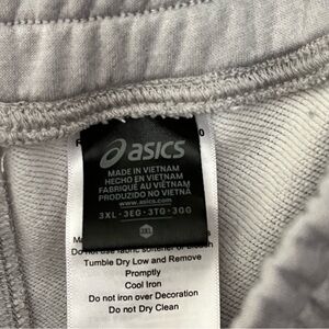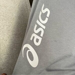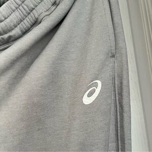 Stylish Asics hoodie & matching sweatpants in light grey. Features a spacious front pocket and cozy hood. Matching textured logo and branding