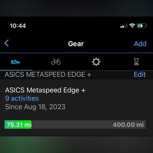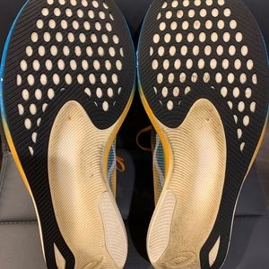 Used but in good condition. I have put a little over 75 miles on these carbon plated shoes with a few long runs and few sessions of speed work. but have come to realize that carbon plated shoes are not for me. These come from a smoke free and pet free home.