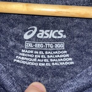 ASICS Run Directions Logo Short Sleeve Tee T-Shirt Blue Heather Men’s XXL 2X. Denim Navy blue heather, short sleeve, crew neck, graphic Run “Directions” logo on the front, logo on sleeve, cotton blend, store & manufacturers tag, made in El Salvador. Check my other New Men’s shirts of this size for bundle & save!