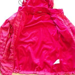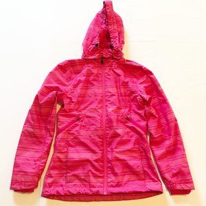 ASICS Storm Shelter Cosmo Pink Striped Hooded Rain Jacket Womens Medium